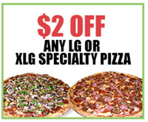 Special!!! $2 OFF Any Large or Xlg Specialty Pizza
