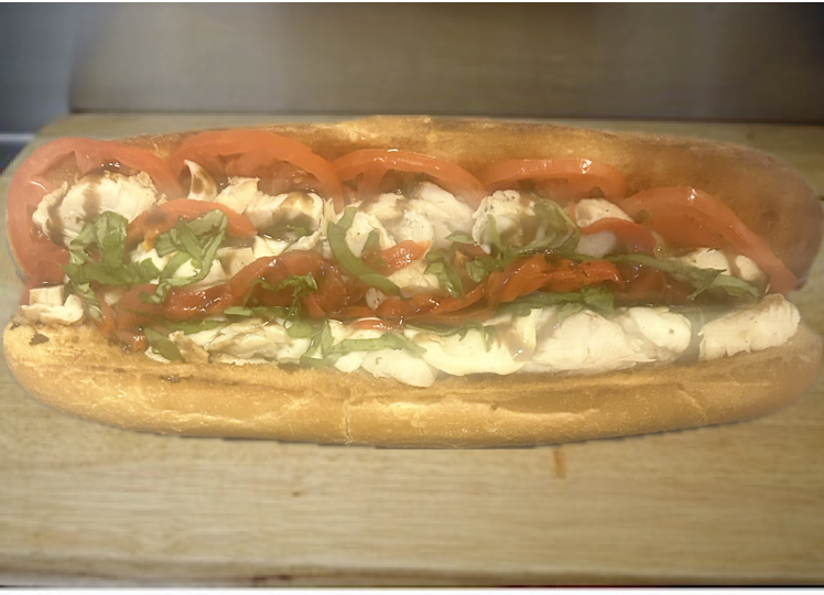 Grilled chicken, romaine lettuce, tomatoes, fresh mozzarella & roasted peppers, garlic knots(2) topped with balsamic reduction.