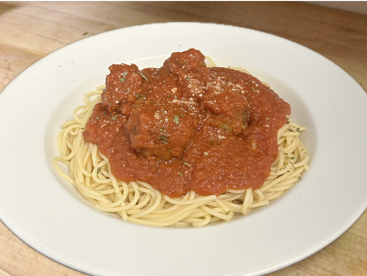 Meat balls over spaghettini in our homemade tomato sauce. Includes garlic knots.