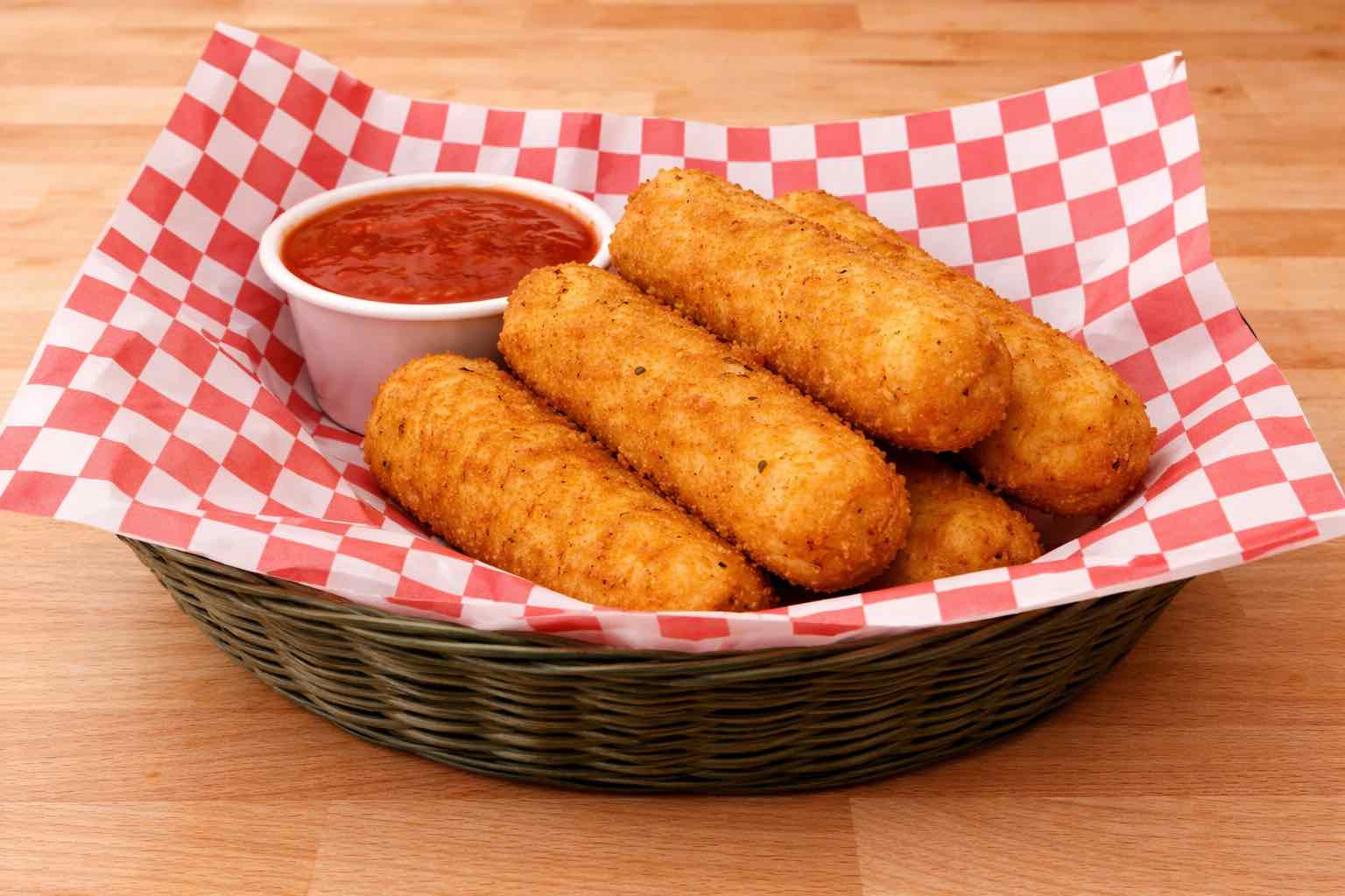 Our fresh dough wrapped with mozzarella cheese, topped with garlic butter and sprinkled with Parmesan cheese. Served with a side of marinara sauce.