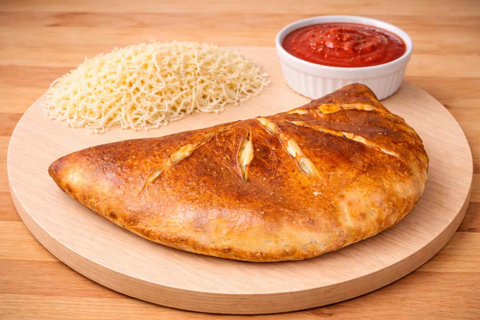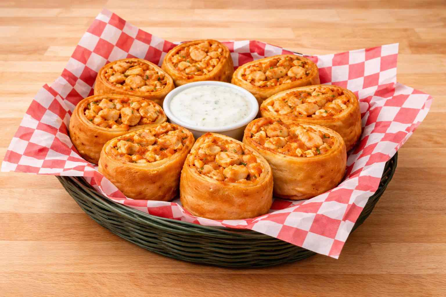 Our fresh dough wrapped around Pepperoni, stuffed with mozzarella cheese, topped with garlic butter and sprinkled with Parmesan cheese. Served with a side of marinara sauce.