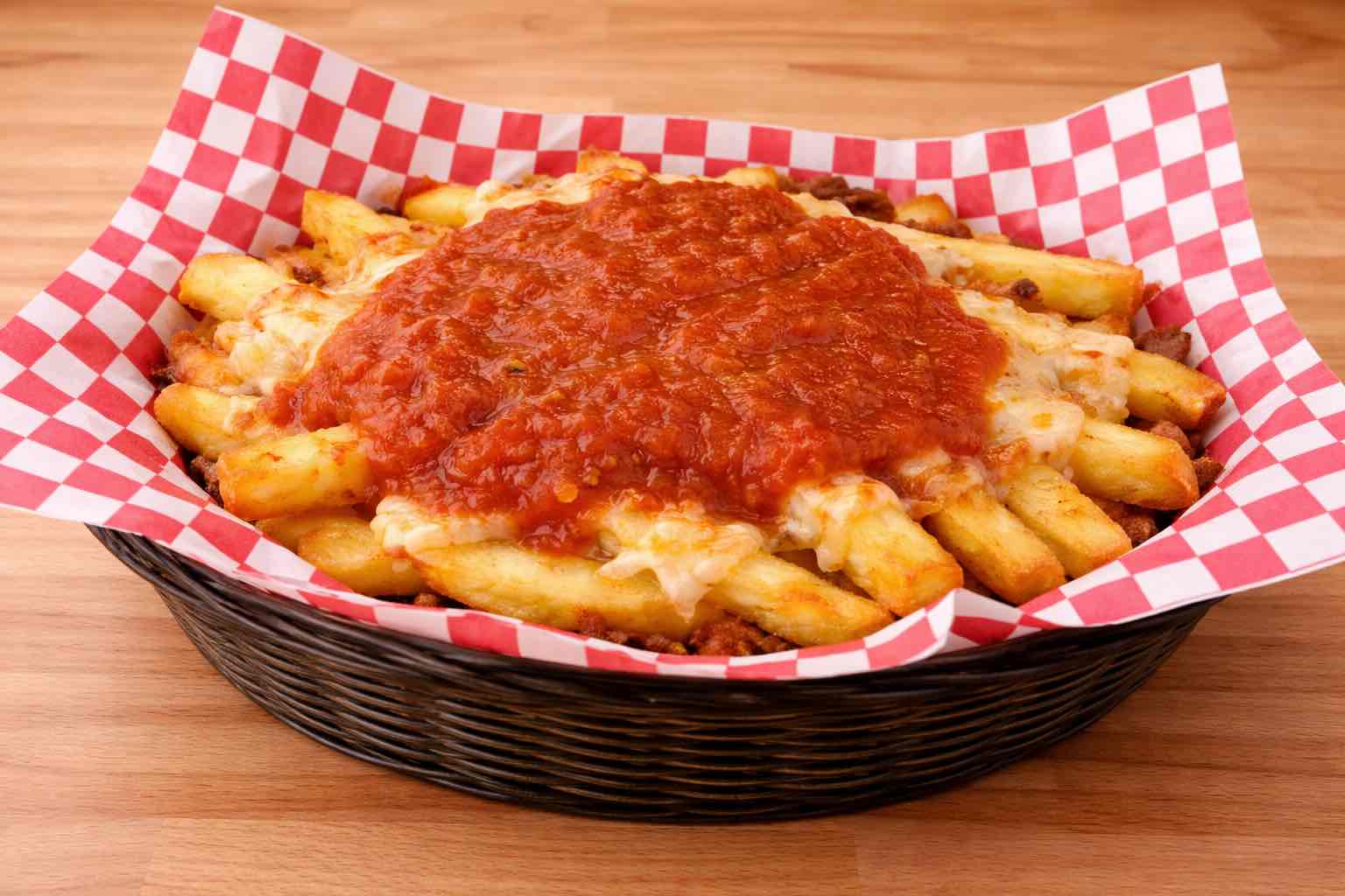 Cheese ravioli in our home made marinara sauce topped with provolone cheese and baked to perfection served with garlic knots.