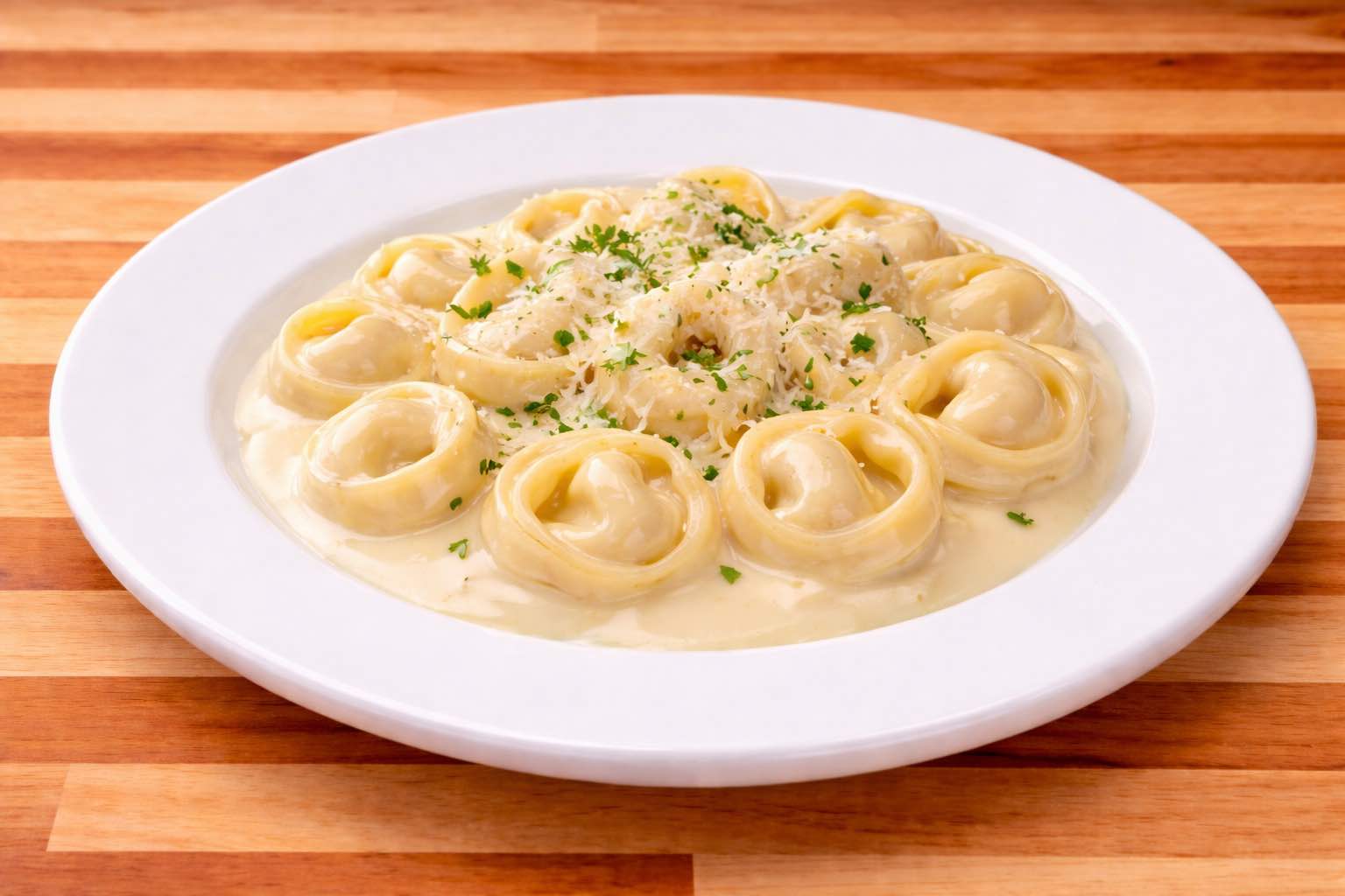 Tortellini pasta tossed in a blend of butter, parmesan cream sauce. (Serves 6-8)